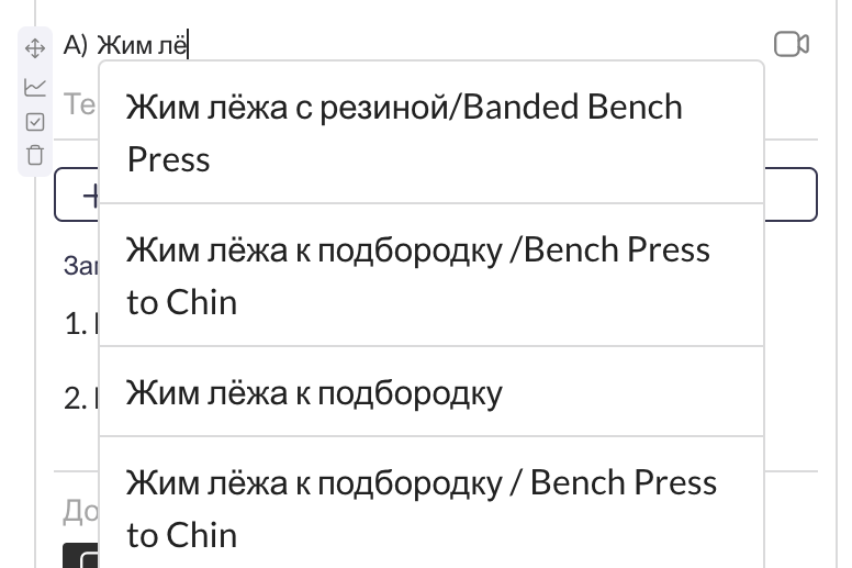 ΠΠ°ΠΆΠΌΠΈΡΠ΅ "+ Π£ΠΏΡΠ°ΠΆΠ½Π΅Π½ΠΈΠ΅" — Π΄ΠΎΠ±Π°Π²Π»ΡΠ΅ΡΡΡ Π±Π»ΠΎΠΊ Ρ: