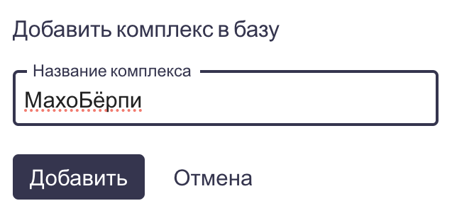 ΠΠ²Π΅Π΄ΠΈΡΠ΅ Π½Π°Π·Π²Π°Π½ΠΈΠ΅ ΠΊΠΎΠΌΠΏΠ»Π΅ΠΊΡΠ°. ΠΡΠ»ΠΈ ΠΊΠΎΠΌΠΏΠ»Π΅ΠΊΡ ΡΠΎΡ ΡΠ°Π½Π΅Π½ΠΈ Π² Π±Π°Π·Π΅, ΡΠΎ ΠΏΠΎ Π½Π°Π·Π²Π°Π½ΠΈ ΡΡΠ°Π±ΠΎΡΠ°Π΅Ρ Π°Π²ΡΠΎΠ΄ΠΎΠΏΠΎΠ»Π½Π΅Π½ΠΈΠ΅.