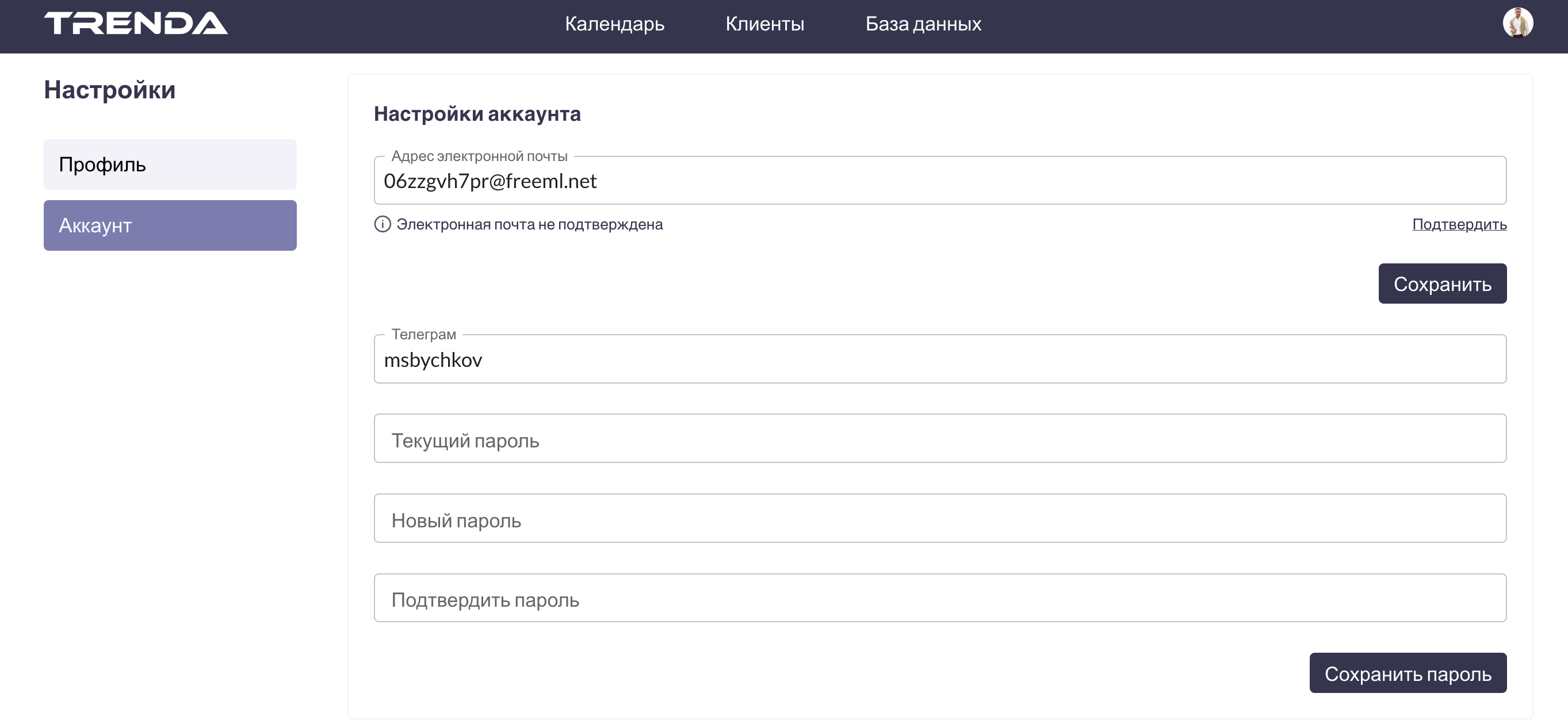 Email — ΠΌΠΎΠΆΠ½ΠΎ ΠΈΠ·ΠΌΠ΅Π½ΠΈΡΡ (Π΅ΡΠ»ΠΈ Π΅ΡΡ Π½Π΅ ΠΏΠΎΠ΄ΡΠ²Π΅ΡΠΆΠ΄ΡΠ½, ΠΏΠΎΡΠ²ΠΈΡΡΡ ΡΡΠ°ΡΡΡ ΠΈ ΠΊΠ½ΠΎΠΏΠΊΠ° “ΠΠΎΠ΄ΡΠ²Π΅ΡΠ΄ΠΈΡΡ”).