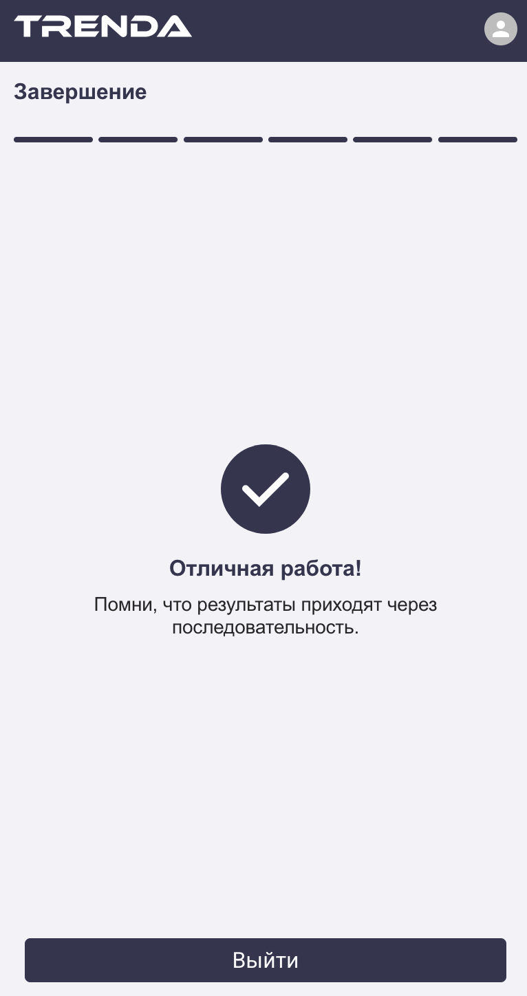 После последнего блока появится экран завершения.