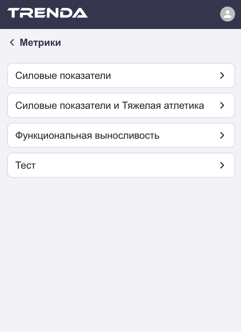 Во вкладке “Метрики” вы можете отслеживать ключевые показатели, которые назначил вам тренер: сила, выносливость, комплексы и любые другие данные.