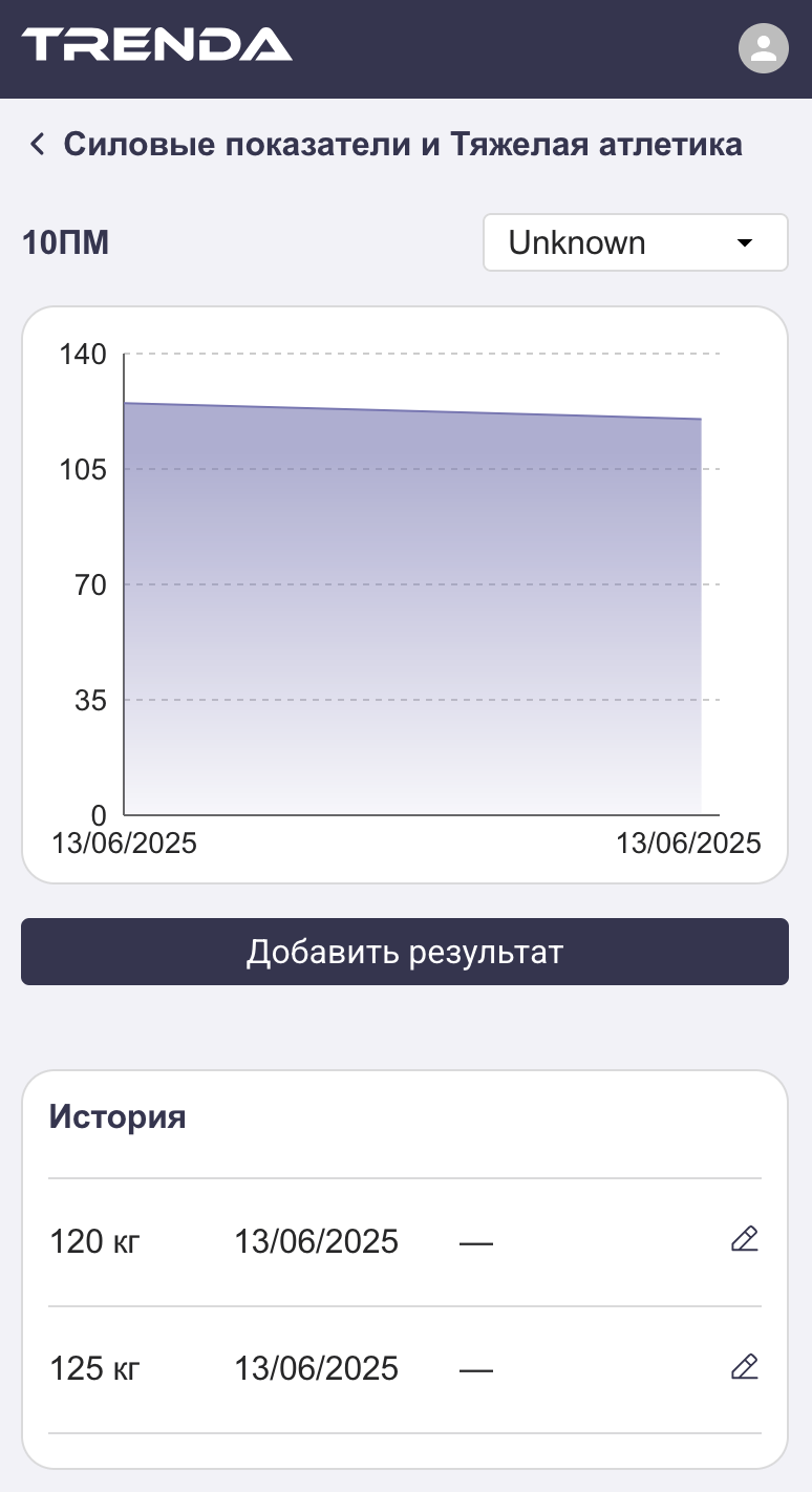 Кнопку “Добавить результат”, для внесения результатов вне выаолнения тренировок.