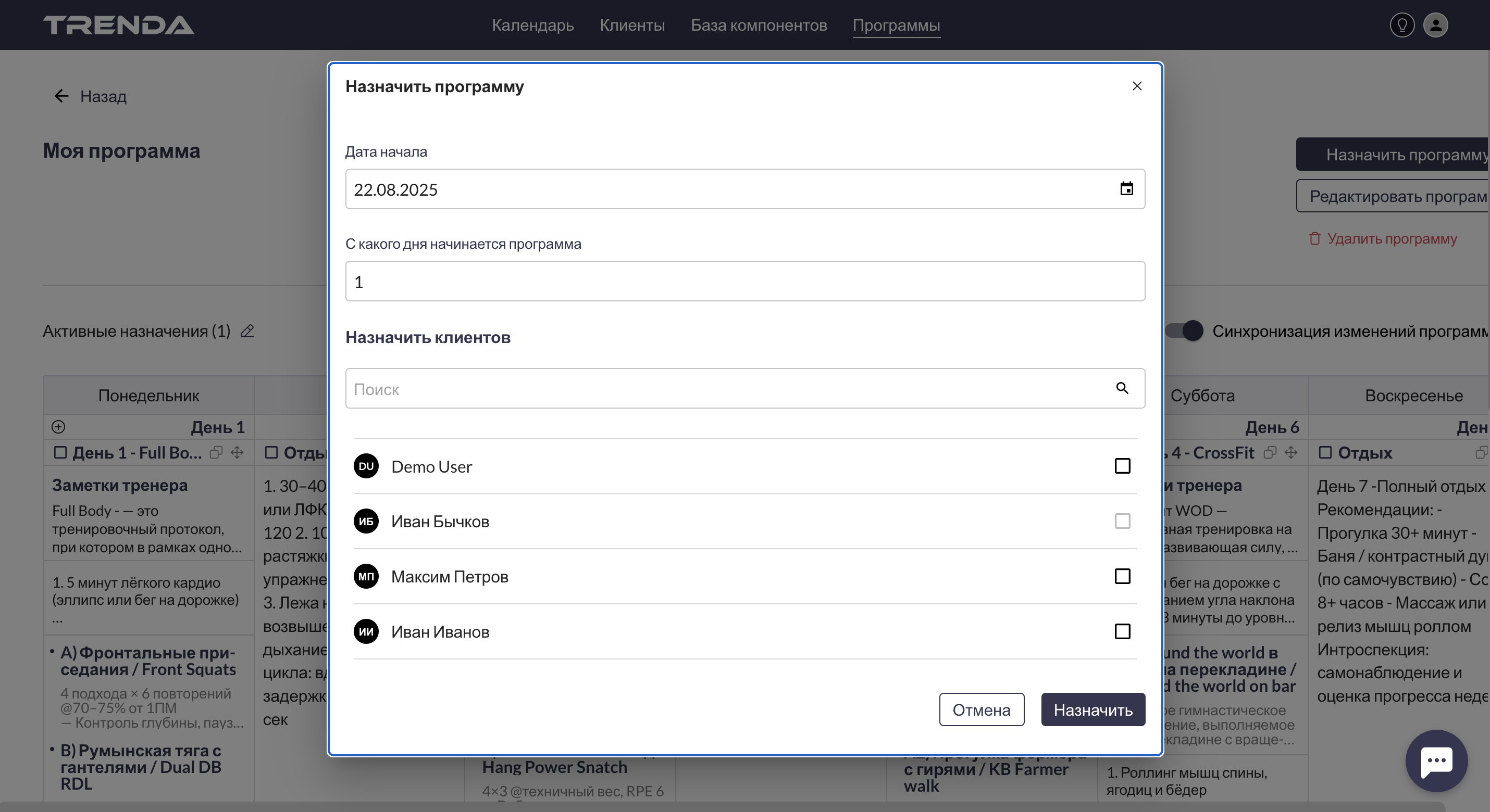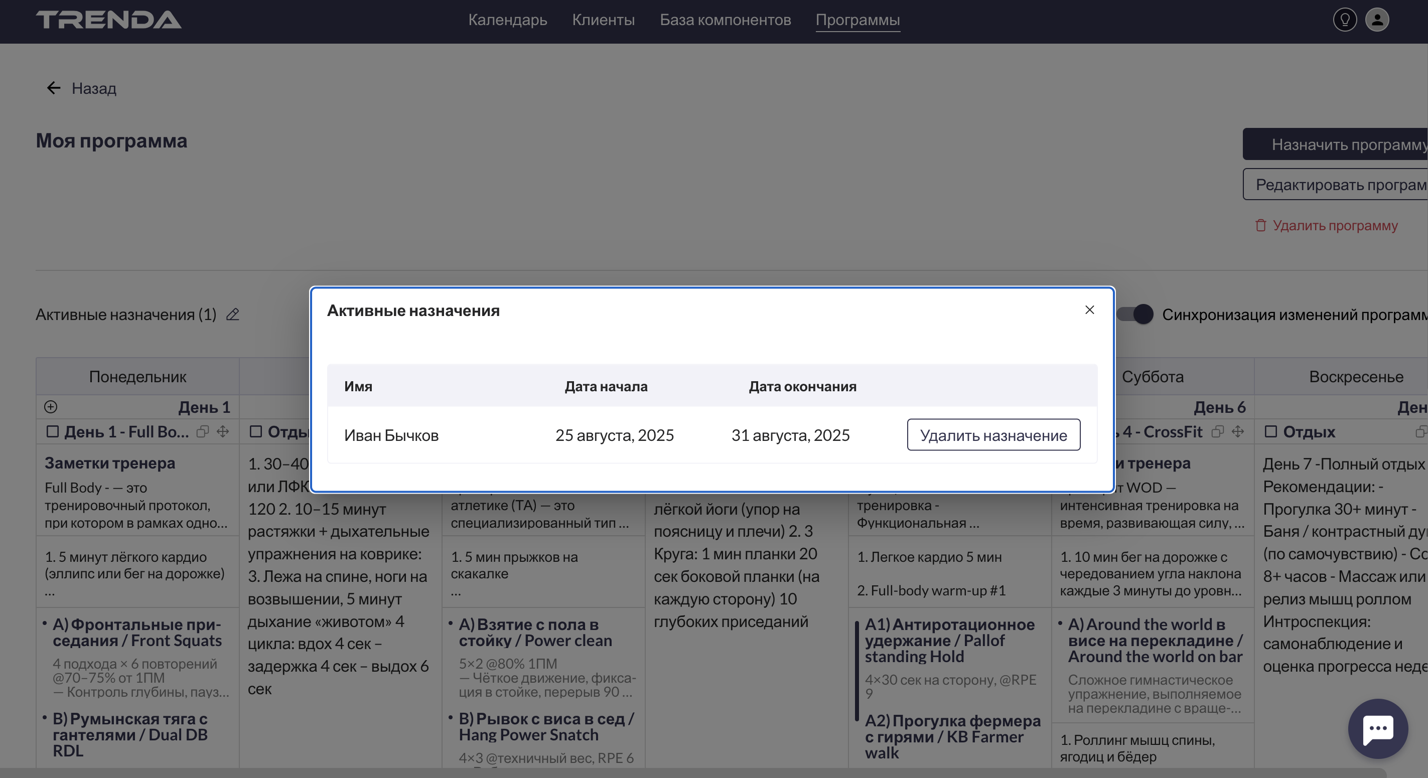 ΠΠΎΡΠ»Π΅ Π½Π°Π·Π½Π°ΡΠ΅Π½ΠΈΡ ΡΠ°Π±Π»ΠΎΠ½Π° Π²Ρ ΠΌΠΎΠΆΠ΅ΡΠ΅ Π·Π°ΠΉΡΠΈ Π² ΠΊΠ°Π»Π΅Π½Π΄Π°ΡΡ ΠΊΠ»ΠΈΠ΅Π½ΡΠ° ΠΈ ΠΏΡΠΈ Π½Π΅ΠΎΠ±Ρ ΠΎΠ΄ΠΈΠΌΠΎΡΡΠΈ ΠΈΠ½Π΄ΠΈΠ²ΠΈΠ΄ΡΠ°Π»ΠΈΠ·ΠΈΡΠΎΠ²Π°ΡΡ Π΅Π³ΠΎ ΠΏΠ»Π°Π½ - Π΄ΠΎΠ±Π°Π²Π»ΡΡΡ, ΠΌΠ΅Π½ΡΡΡ ΠΈΠ»ΠΈ ΡΠ΄Π°Π»ΡΡΡ ΡΠ»Π΅ΠΌΠ΅Π½ΡΡ ΠΏΡΡΠΌΠΎ Π² Π»ΠΈΡΠ½ΠΎΠΌ ΠΊΠ°Π»Π΅Π½Π΄Π°ΡΠ΅.